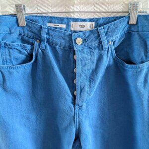 Mango Nora Button Fly Wide Leg High Rise Jeans Vibrant Blue Size 10 Denim