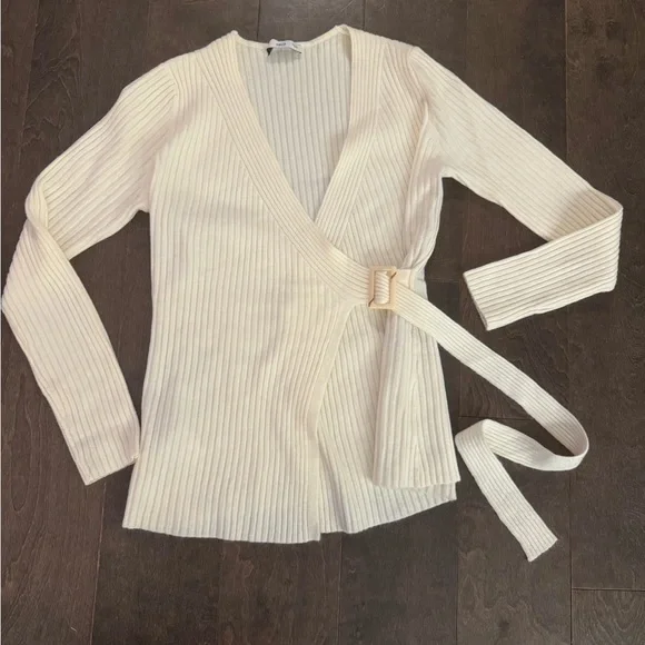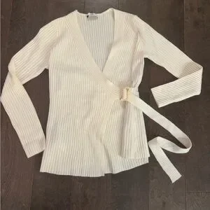 Chic ribbed cardigan with a wrap design with belt for a tailored fit. Ideal for layering. EUC.