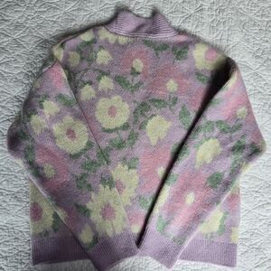 Mango Pastel Floral V-Neck Jewel Button Cardigan - Purple