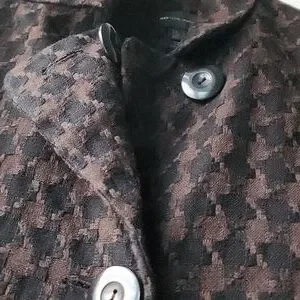 Darling 60s style jacket! - Shortened Sleeves - 2 Front Pockets - Houndstooth like pattern - Polyester, Viscose Wool Blend - Lined - Large Buttons - Large Notched Collar - Back Pleat Open to offers!