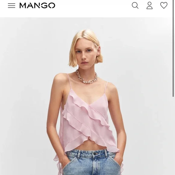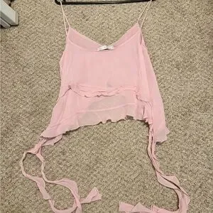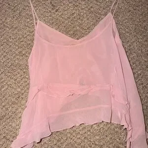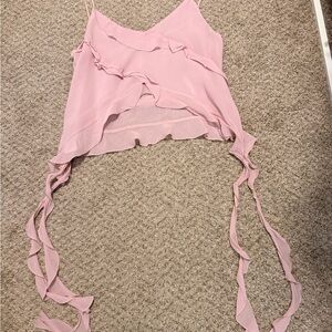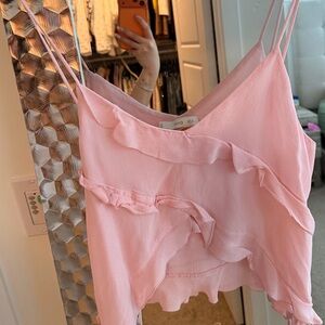 Elevate your style with this elegant pink ruffle camisole. Ideal for layering or wearing solo for a chic look.