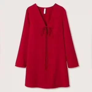 Flared. Short cut. V-neck. Long sleeves. Opening on the front. Cord. Elasticated waist at the back. Lining. Festivities and ceremonies collection.