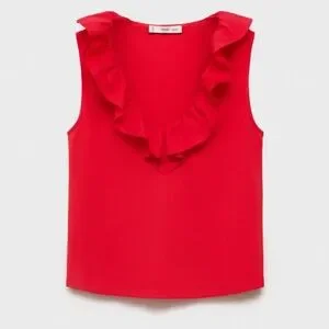 Mango Red Ruffled Sleeveless Top
