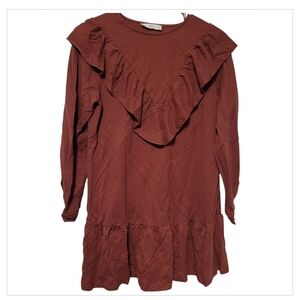 Mango Rust Ruffle Front Long Sleeve Mini Dress XS