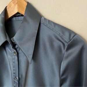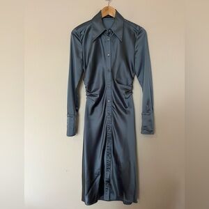 Mango Satin Ruched Shirt Dress – Slate Blue – Size Small
