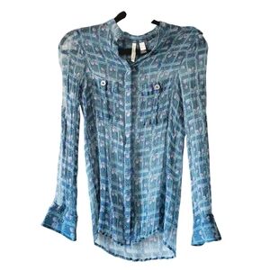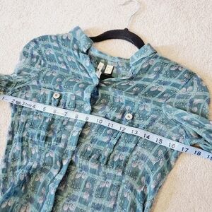 Mango Sheer Silk Shell Print Mermaid Core Y2k Button Up Blouse S