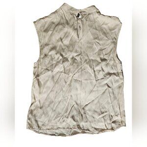 Mango Sleeveless High Neck Beige Tank