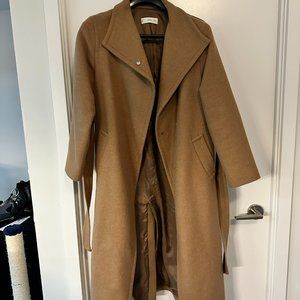 Mango Tan Colour Wrap-Style Wool Coat (Long)