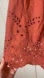 Elegant terracotta dress with stylish puff sleeves. Ideal for versatile wear. Beautiful eyelet lace at the bottom of dress. Fabric is prone to wrinkles, but flouncy and feminine.