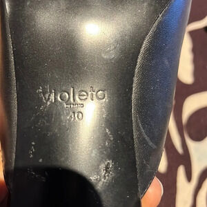 🖤Rare stunning chic style Mango Violeta black leather geometric clear heels mules Sz 40 approx measurements preloved worn preloved scratches all over flaws photographed same day shipping from smoke free home