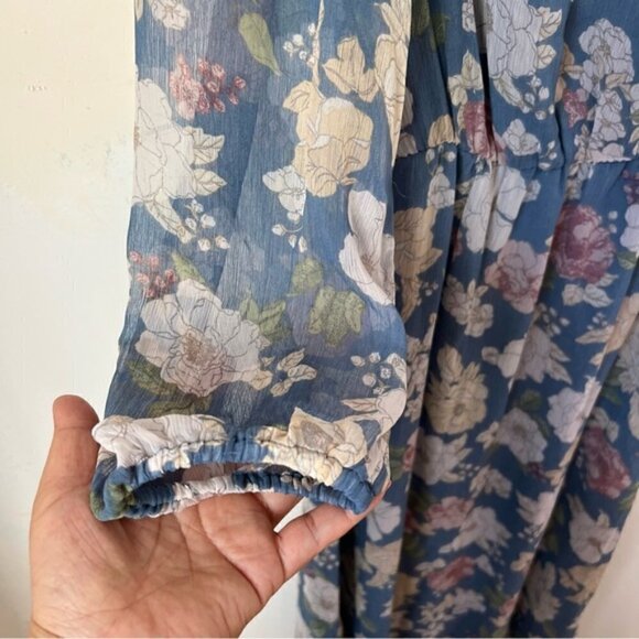 Mango, Women's Floral Chiffon Dress - Blue. Size: 4 (US). NWT