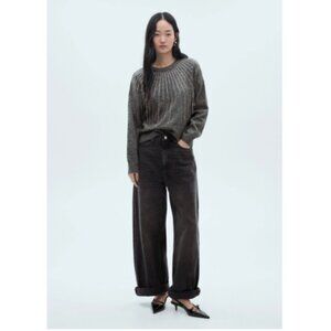 Mango Women's Glitter Detail Knitted Sweater gray size L NWOT
