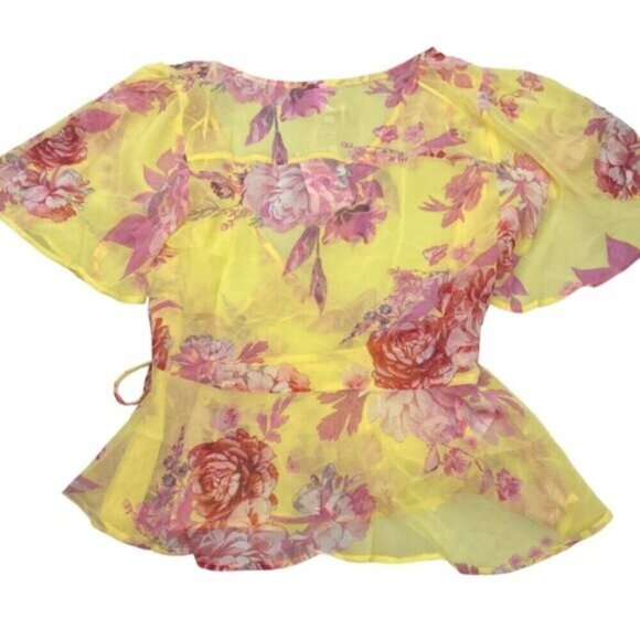 Mango Womens Romance Flowy Wrap Blouse Floral Print Size 4