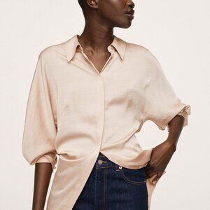 32. Mango Womens Rose Gold/Champagne Button down longline blouse Office Classy