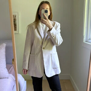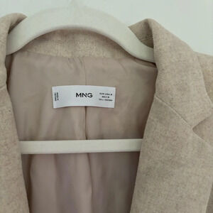 Mango Wool Blend Long Oversized Blazer Light Beige Oatmeal Size M Shoulder Pads
