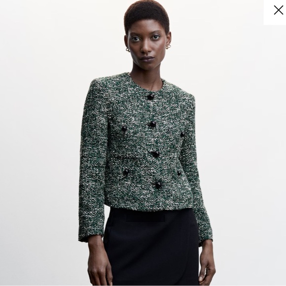 Mango green tweed jacket, women’s Medium, NWT, front pockets.