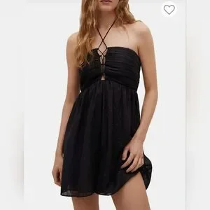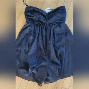 black with metallic threading, romper with hidden shorts. So cute for the summer, but would also be amazing worth tights for a winter party or night out.