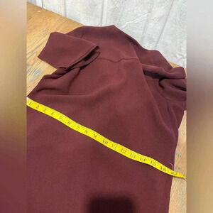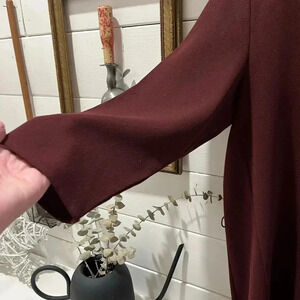 Elegant and structured shift dress in a deep burgundy shade by Mango. Features long straight sleeves, clean lines, and a minimal V-neck. Hidden front placket for a sleek silhouette. Ideal for professional or semi-formal wear. Without belt