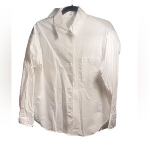 Mango white oversized cotton relaxed long sleeve 1 pocket button down shirt XS