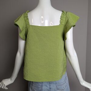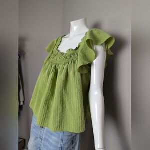 Mango women's top Peasant Texture blouse Green flowy ruffled S