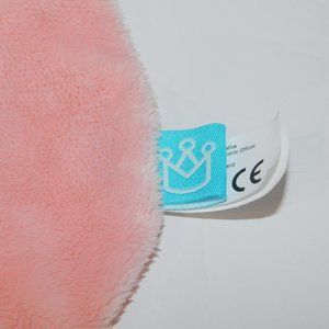 This Manhattan Toy Hippity Hop Pink Orange Round Bunny Rabbit Security Blanket Lovey nunu with Paci Holder is in Great clean condition with tush tag still attached . Plush top with Hippity Hop embroidered on it - Orange material underside.. Features material paci holder on side.. Measures 11" in diameter.