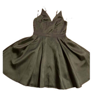 Maniju S black lined full skirt dress with spaghetti straps and back zip
