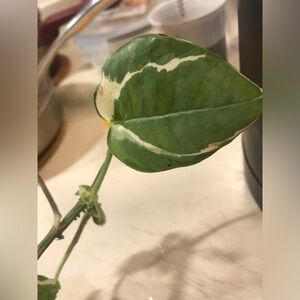 Beautiful plant, pothos manjula. This variegation is eye soothing and to me calming. It takes up almost has a leaf with the light cream almost tones. Perfect to add to any collection.