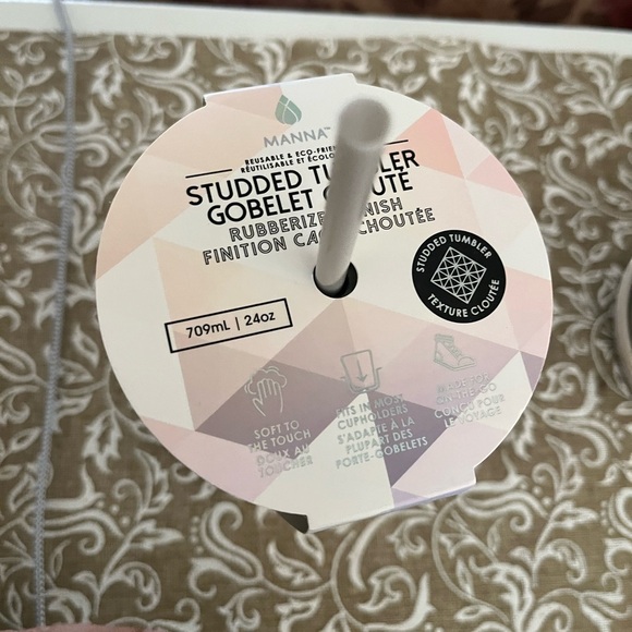 Stylish studded tumbler with a rubberized finish. Comes with a matching straw. Perfect for on-the-go hydration.