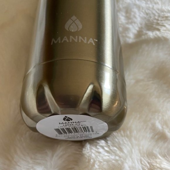 MANNA 17 OZ/500 ML Gold-coloured stainless steel water bottle. Bottle is lead-free and BPA-free. Double-wall insulated. Keeps cold for 24 hours, keeps hot for 12 hours. Brand new with tags as shown. Colour depends on screen settings and lighting in pictures. All items are from my smoke free home.