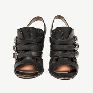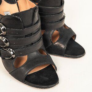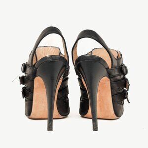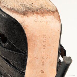 Manolo Blahnik Black Leather Buckled Gladiator Sandals