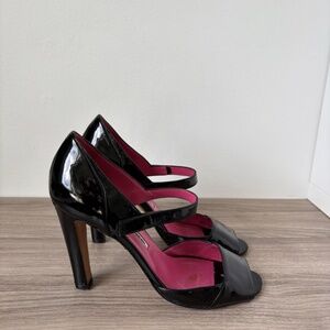 Manolo Blahnik Black Patent Heeled Mary Jane Sandals Sz 7.5 US *VINTAGE*❤️