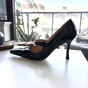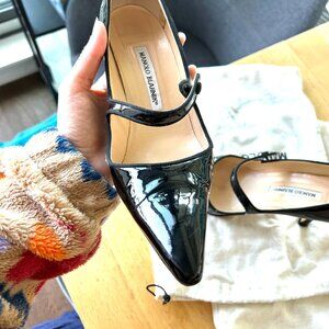 Manolo Blahnik Black Patent Leather Mary Jane Classic Pumps 39