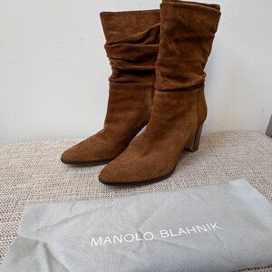 Authentic Manolo Blahnik Knight boots in Cognac Suede colour. Size is 38M (7-7.5).
