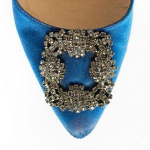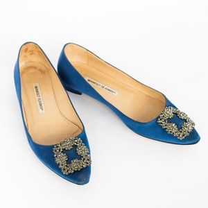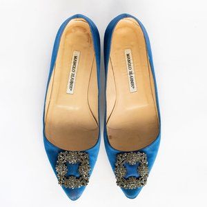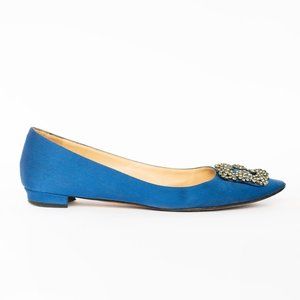 Description: Blue Manolo Blahnik Hangisi Flats