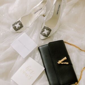 Manolo Blahnik Hangisi White Lace Bridal Heels