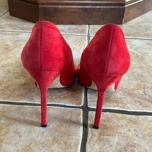 Elegant red heels with a pointed toe. Crafted by Manolo Blahnik. Perfect for any occasion.
