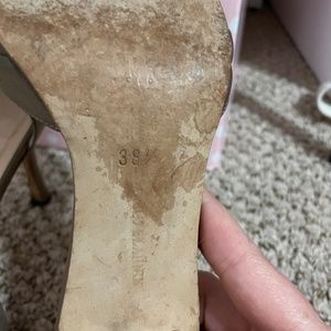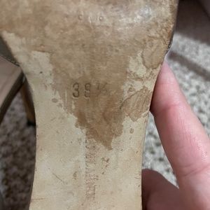 An iconic and classic Manolo Blahnik shoe! These are gently used Manolo Blahniks - toasted almond I believe is the colour (a dark tan colour. I paired them with my champagne coloured wedding gown and the effect was beautiful). They were purchased in 2009 and worn a total of five times. They feature an oval crystal detail and ruched toe. I no longer have the box or the official dust bag, but I can provide a shoe dust bag. They are size 38 1/2 with a 3” heel. For reference I wear a size 8 and they fit me well. I did find them narrow through the toe. It is a peep toe satin heel, with some light scuffing on the heels of both shoes as well as scuffing on the soles of both shoes from being worn outside (see photos). The soles are normal wear and tear for this brand of shoes. These are discontinued. These retailed for about $755 at the time of purchase. They have been in a smoke free home safely inside a dust bag in a closet for some time. They are fabulous shoes and it is time for a new pair of feet to show them off. A great addition to your shoe closet. ❤️