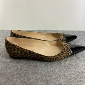 Manolo Blahnik Suede Leopard Print Black Patent Flats Women’s Size 41 - US 9-9.5