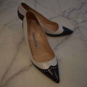Manolo Blahnik Two-Tone Leather Pointed Toe Pump