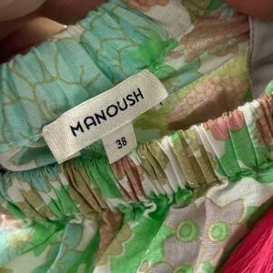 This stylish women's top features a vibrant floral pattern in green and pink. Perfect for adding a pop of color to your wardrobe.