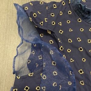 Manoush Navy Gold Ruffled Sleeveless Top Size 4