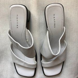Mantles Block Heel White Sandles Open Toe Mules, Size 8.5 M