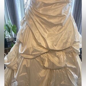 Taffeta look, lots of fabric, built in fastener. Sample #2. Must be cleaned before wearing