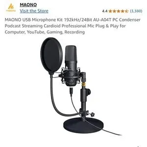 MAONO USB Microphone Kit 192kHz/24Bit AU-AO4T PC Condenser