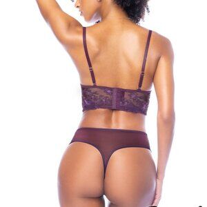 Mapale Lace bra with underwired cups, adjustable straps and an hook & eye back closure & High -waist sheer mesh thong with a front lace inset.
