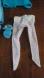 In excellent condition, this Maplelea Belle of the Ball doll outfit includes long blue satin skirt with a sleeveless sweater and cardigan set with white feather trim. Also included are shiny white tights, strappy blue shoes.