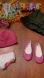 pink ballet flats shoes with cut out heart shaped embellishments, and white underwear with pink trim.
