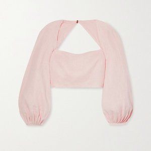 This is a perfect summer top - super high quality hemp linen. New with tags. Just too small for me or I would be wearing it right now! Looks amazing with high waisted jeans or shorts (or skirts as in photo) or with mid or lower rise bottoms if you want to wear it as a cropped look. Purchased directly from Netaporter