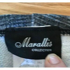 These Marallis Collection blue grey white straight leg pants in size large offer a stylish check pattern with a hint of sparkle. Made from stretchy polyester, they feature convenient pockets for practicality.