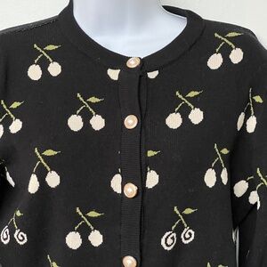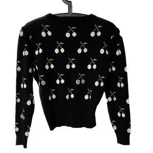 Marant Cherry Sweater Cardigan Button Up Repeat Pattern Black Cream Size S/M